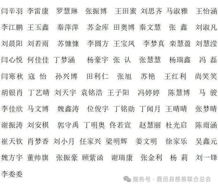 为切实做好 2025 年度贫困大学生救助工作,在县委、县政府坚强的领导下,为帮助鹿邑贫困家庭学子顺利入学,根据《鹿邑县慈善联合总会 2025 年度贫困大学生救助活动实施方案》(鹿慈文﹝2025﹞5 号),经个人申报、学校、教体局初审、县慈善联合总会审核及会长办公会议研究通过,现将符合救助要求的81人面向社会进行公示,2025 年度贫困大学生救助拟资助对象名单予以公示。